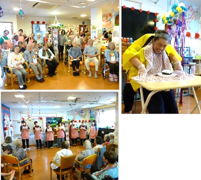スタッフが二人羽織やマツケンサンバの踊りを披露し、みなさんに喜んでいただけました!