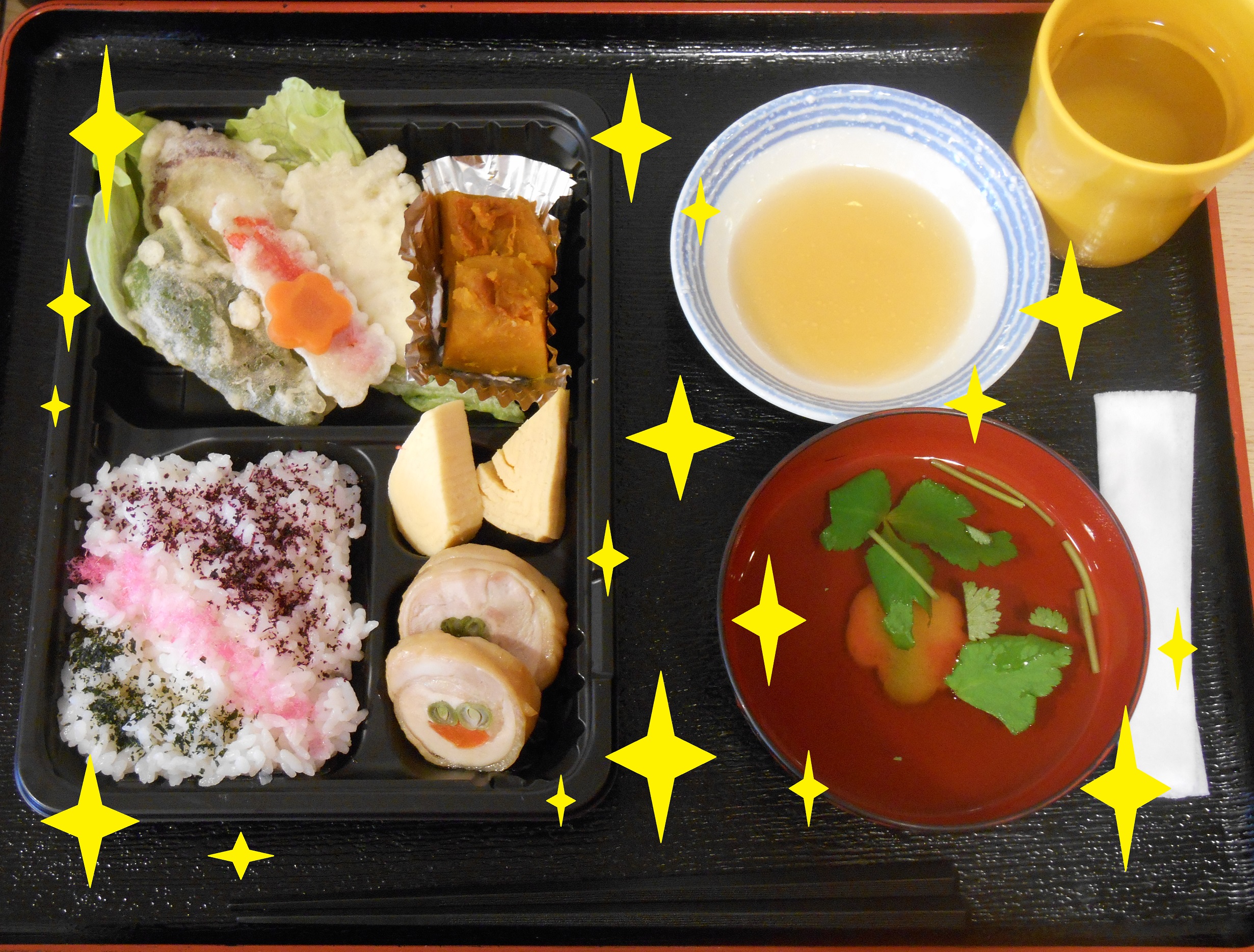 お花見弁当の中に 可愛い花形人参が!!