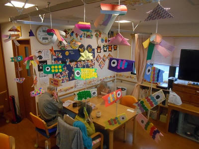当日の午後はこれを被り、こどもの日にちなんだクイズ等を楽しみました✨