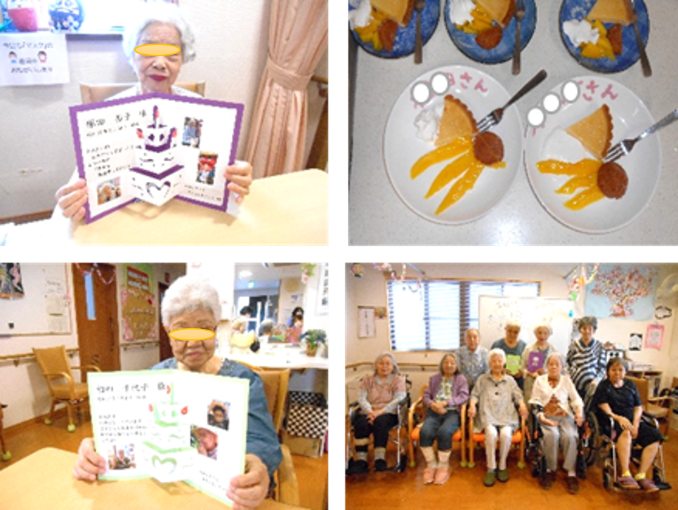 スタッフお手製のバースデーカードをプレゼントさせていただきました。みんなで歌を歌ったりしながら、お祝いしました。