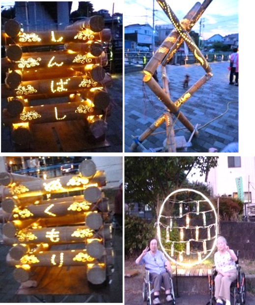 スタッフと当日宿泊の方2名で行ってきました。ライトアップされたキャラクターを見つけ「かわいいわねぇ」と目を細め眺めていました。高く組んである櫓を見上げ「よくこんなに高いのを…」と驚いていました。