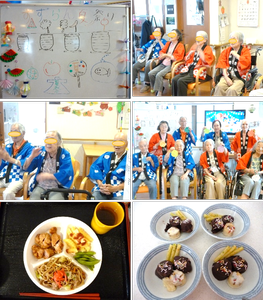 DVDを見ながら、輪になって盆踊りを踊りました。「振りを忘れちゃったわ」と言いながらも、 曲が始まると手拍子され、踊り終えたときには、皆笑顔になっていました。