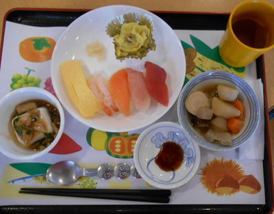 特別食では、海鮮がたっぷりのったちらし寿司を皆さん完食されていました。