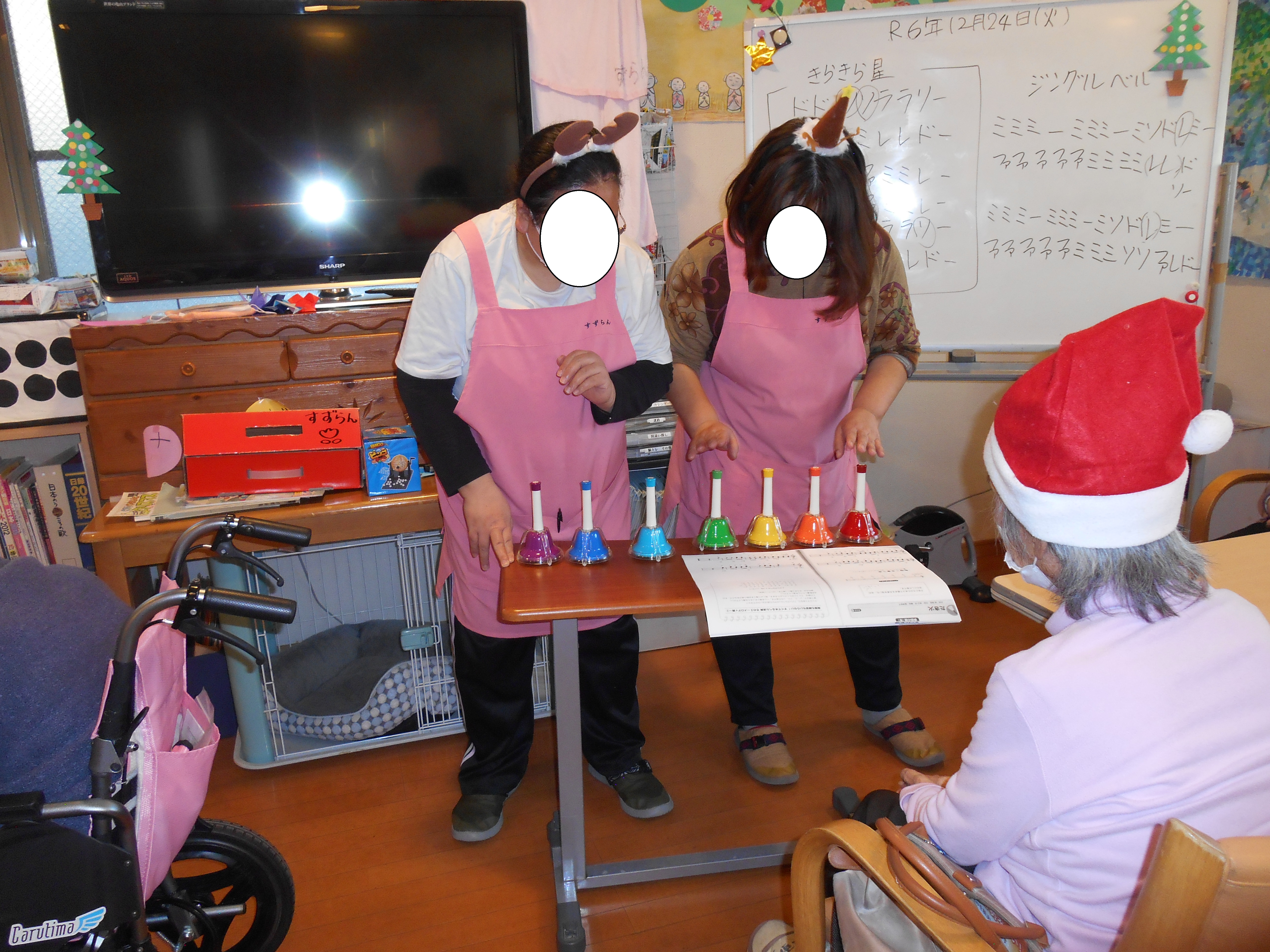 そのあとにご利用者にも一緒にハンドベルをしていただきました。