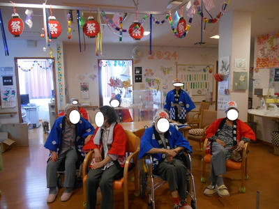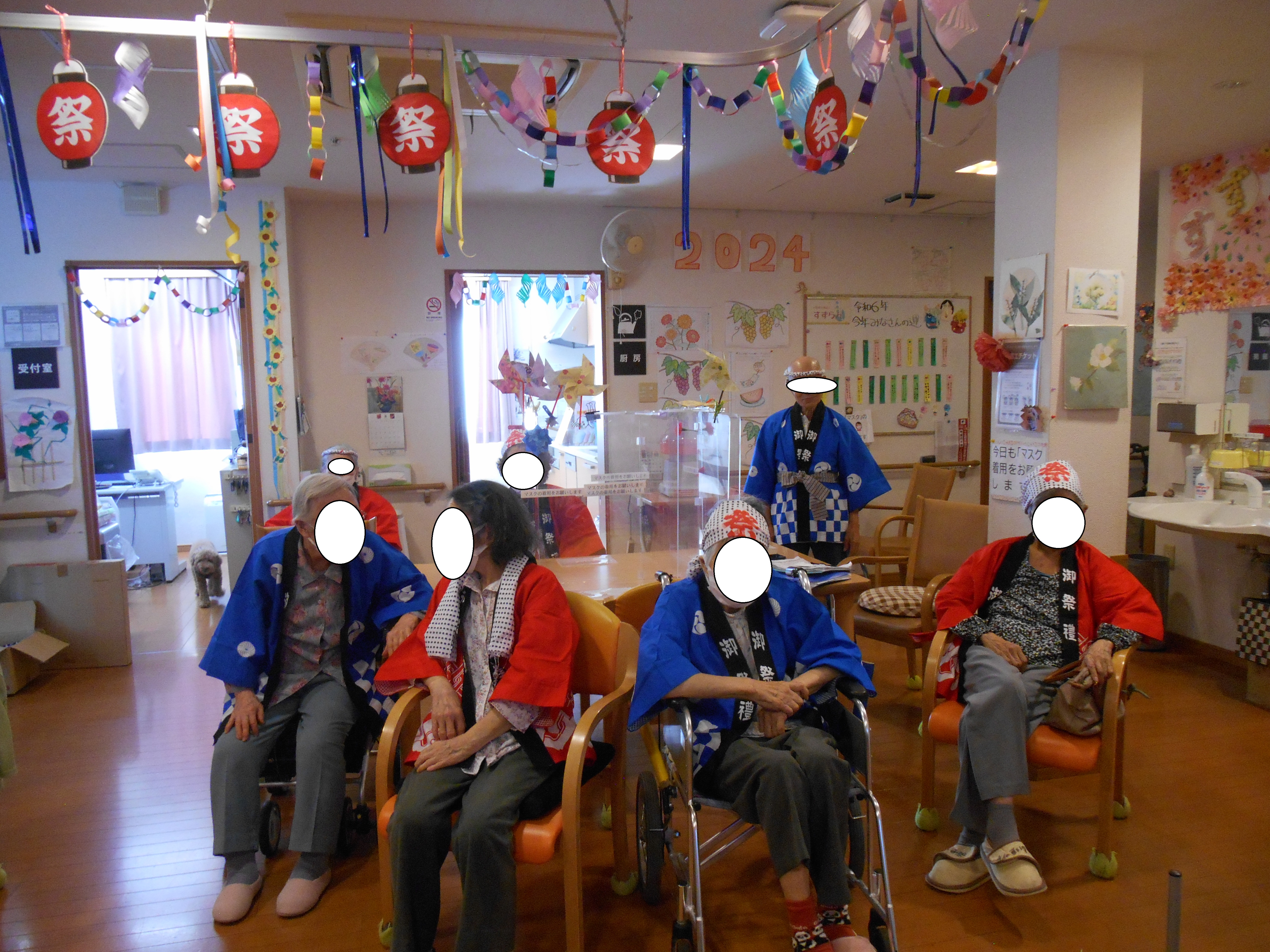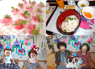 夏の話題を話しながら ご利用者様皆様の前に