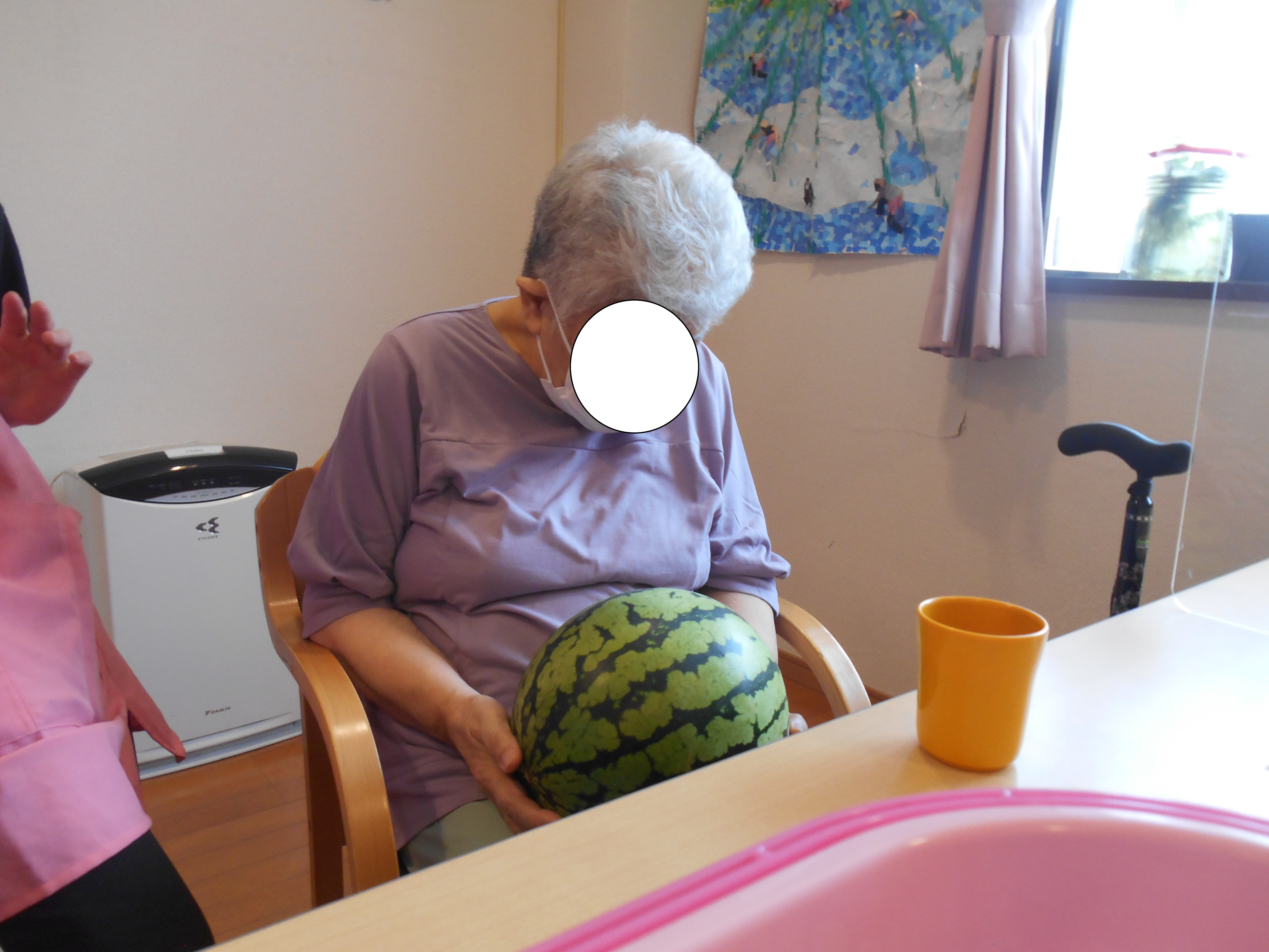 ご利用者様一人一人にスイカを持っていただき