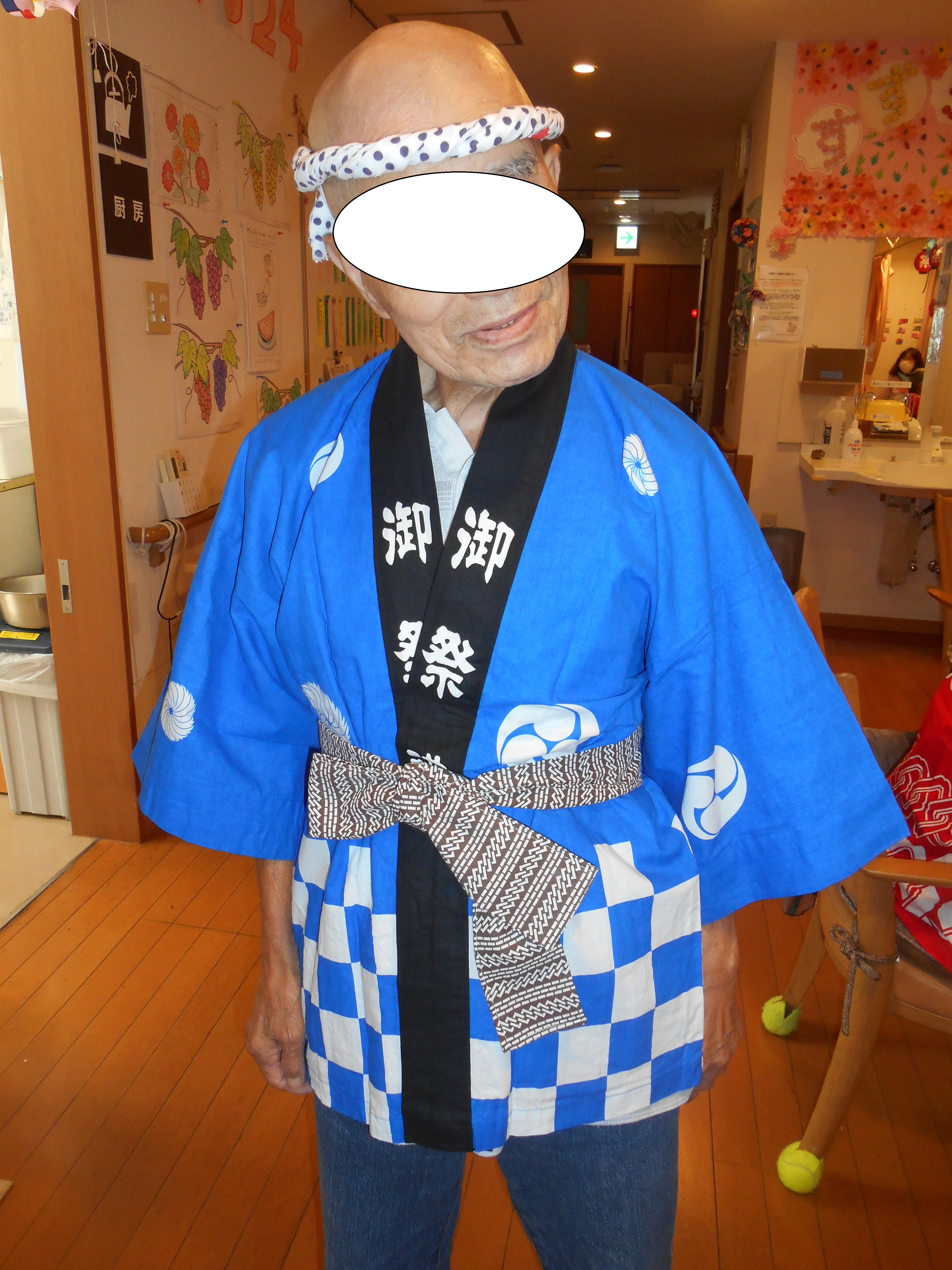ねじり鉢巻きをし、法被を着て頂き 感じて頂きました。